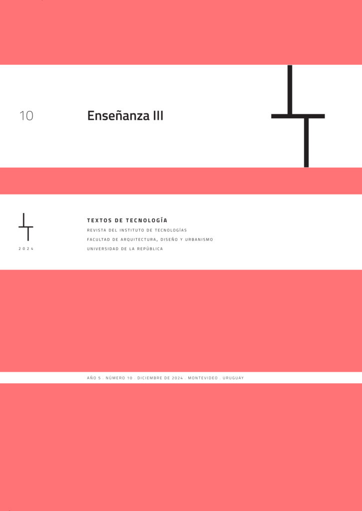 La revista Textos de Tecnología es creada en el año 2019 en el Instituto de la Construcción de la Facultad de Arquitectura, Diseño y Urbanismo de la Udelar. La revista representa el primer paso de una estrategia de comunicación institucional que se estará desarrollando a partir de ahora, acompañando el camino de consolidación de la investigación en los temas tecnológicos, inherentes tanto a la Arquitectura como al Diseño. Un camino que se recorre con los integrantes del instituto (IC/UDELAR) y con invitados nacionales e internacionales, referentes en las temáticas abordadas en cada edición, como forma de mostrar una visión complementaria entre la academia y los actores que trabajan directamente en la producción.